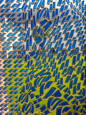 Bei der Recherche stellen wir fest, daß es sich um ein Werk des Künstlers Thomas Bayrle handelt. Wer sich mit dem Kunstwerk befassen und die Hintergründe erfahren möchte, sollte sich die Seite Kunst im Fokus anschauen.
