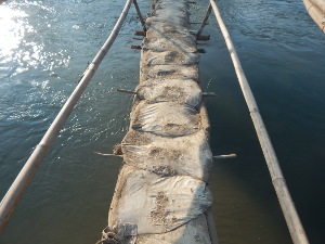 Mit dem Einbaum über den Fluss Rapti