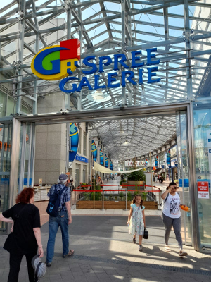 Über 40 Geschäfte (Bekleidung, Haushaltswaren, Drogerie usw.) und Restaurants findest du in der Spree Galerie. Das moderne Gebäude bietet innen erfrischendes Grün und Blumendeko. Ich finde es recht schön gemacht!