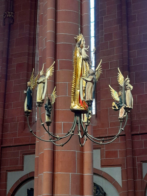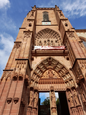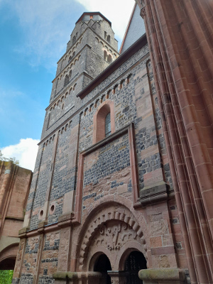 Darum finden sich im heutigen Wetzlarer Dom Baustile von der Früh- und Spätgotik bis zur Romanik. Hinter dem Turmportal sehen wir das Heidenportal, das frühere Eingangsportal der Vorgängerkirche.