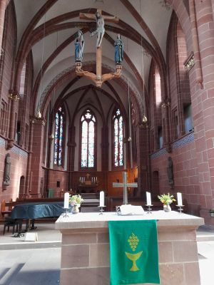 Überraschend ist das Innere des Doms, denn er wird von Katholiken und Protestanten gleichzeitig genutzt. Der Wetzlarer Dom ist eine Simultankirche. Beide Religionen haben einen eigenen Altar. Der katholische Altar ist in der Apsis, der evangeliche in der Vierung.