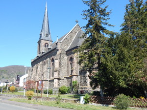 Als Bopparder sind wir mit der Fähre über den Rhein gefahren. Es tut so gut, mal wieder auf einem Schiff zu sein. Wir genießen den Blick auf die Bopparder Rheinfront. Von der Autofähre Boppard sind es nur rund 800 Meter entlang der Rheinuferstraße bis zum Ortseingang von Filsen, wo uns die Katholische Kirche St. Margaretha begrüßt.