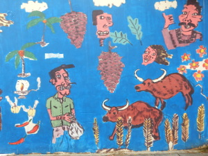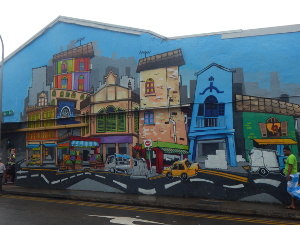 Das Werk mit den fröhlich feiernden Menschen und Kühen des Künstlers Izzad Radzali nennt sich Festival und liegt in der Nähe der bunten Kühe. In der Baboo Lane, 212 Serangoon Road treffe ich auf das Stadtbild mit den Häusern. Alle diese Häuser des Künstlers Sha Rizzal sollen in Little India zu finden sein. (Infoquelle: theocassionaltraveler)
