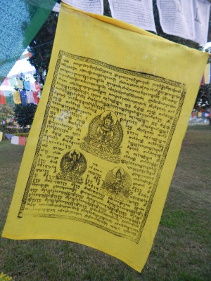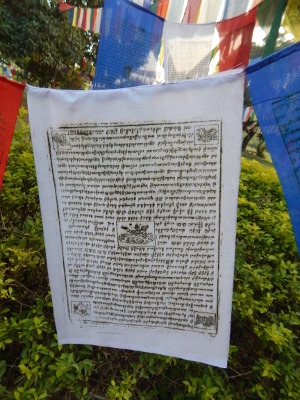 Gebetsflaggen im heiligen Garten von Lumbini.