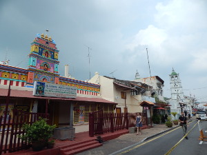 Als Harmoniestraße bezeichnete unser chinesischer Reiseleiter die Jalan Tukan Emas, da dort der indische Sri Poyyatha Vinayagar Moorti-Tempel sowie die Kampung Keling Moschee friedlich nebeneinanderliegen.