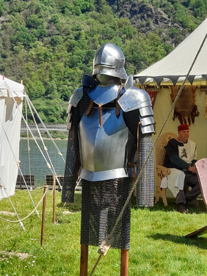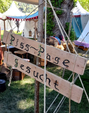 Es gibt viel zu schauen. Aufkommende Fragen beantworten die Lagerleute gerne, z.B. zu Bekleidung der Ritter mit Kettenhemd, Unterkleid und Rüstung. Wer half ihnen beim An- und Ausziehen? Oder die Stellenanzeige, Piss-Page gesucht. Was sind seine genauen Tätigkeiten?