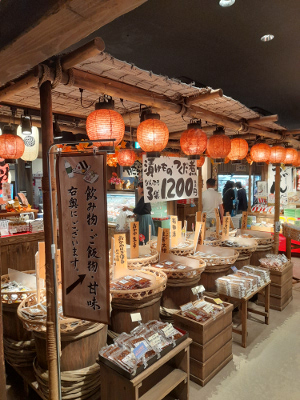 Auf unserer Heimfahrt nach Tokio halten wir an einer Autobahnraststätte. Sie wurde im historischen Edo-Stil errichtet. Schon beim Eingang begrüßen mich die leuchtenden bunten Papierlampen. Alles wirkt so, als wären wir inmitten einer Filmkulisse gelandet.