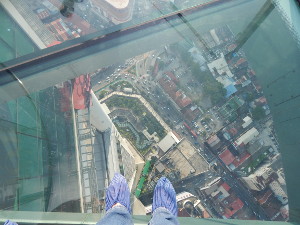 Der Skywalk auf dem Komtar Aussichtspunkt in Penang Malaysia