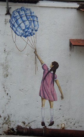 Gerade das Bild „Kinder auf dem Fahrrad“, das du in der Armenian Street findest, ist ständig von Besuchern umringt, die versuchen, ein Foto von sich und der Street Art zu machen. Du brauchst hier nicht nur viel Geduld, auch das Werk leidet mit der Zeit unter den vielen Touristen.